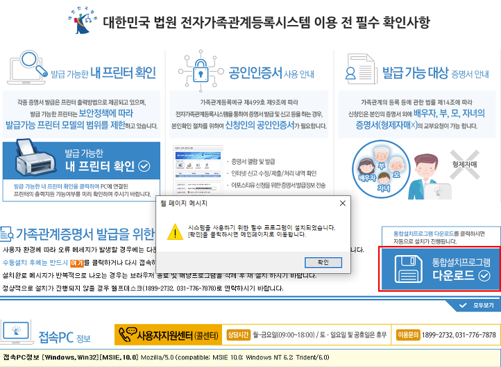 2. 대법원 전자가족관계등록시스템 보안 프로그램 설치