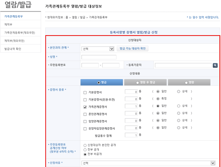 4. 가족관계증명서 신청