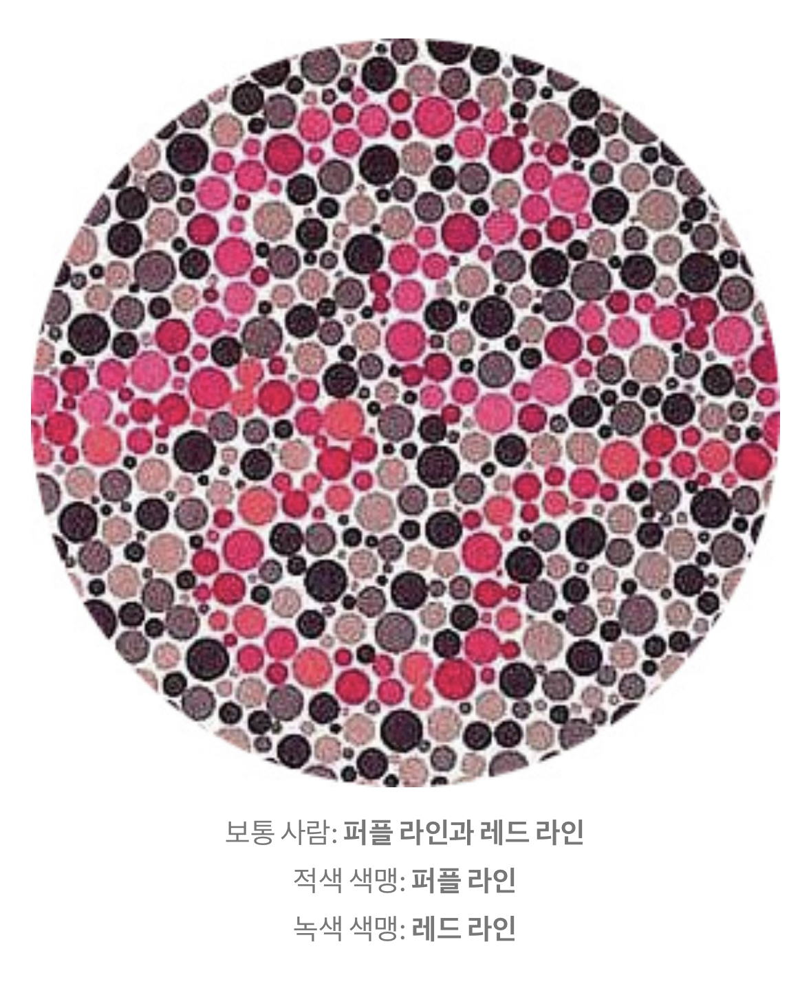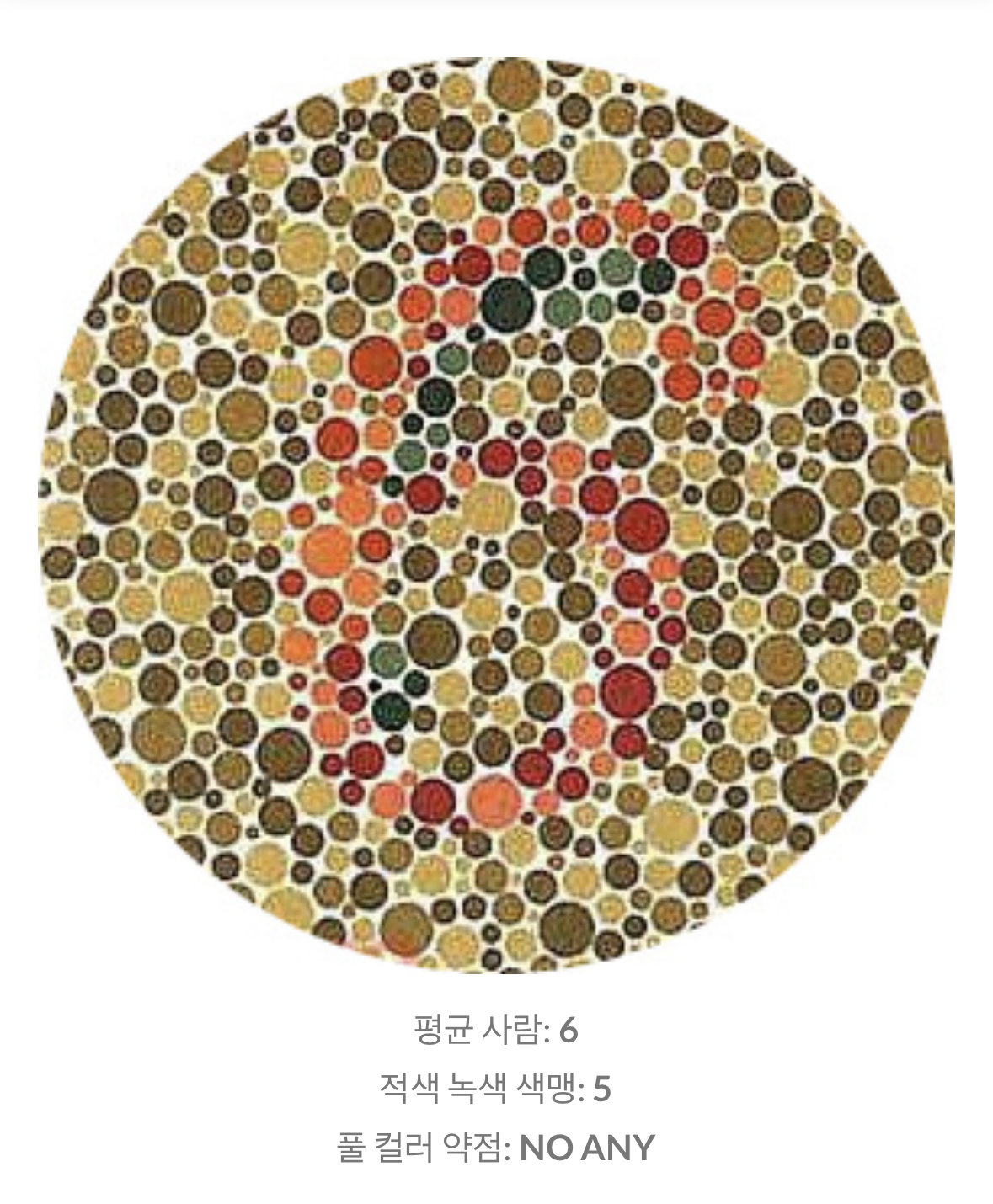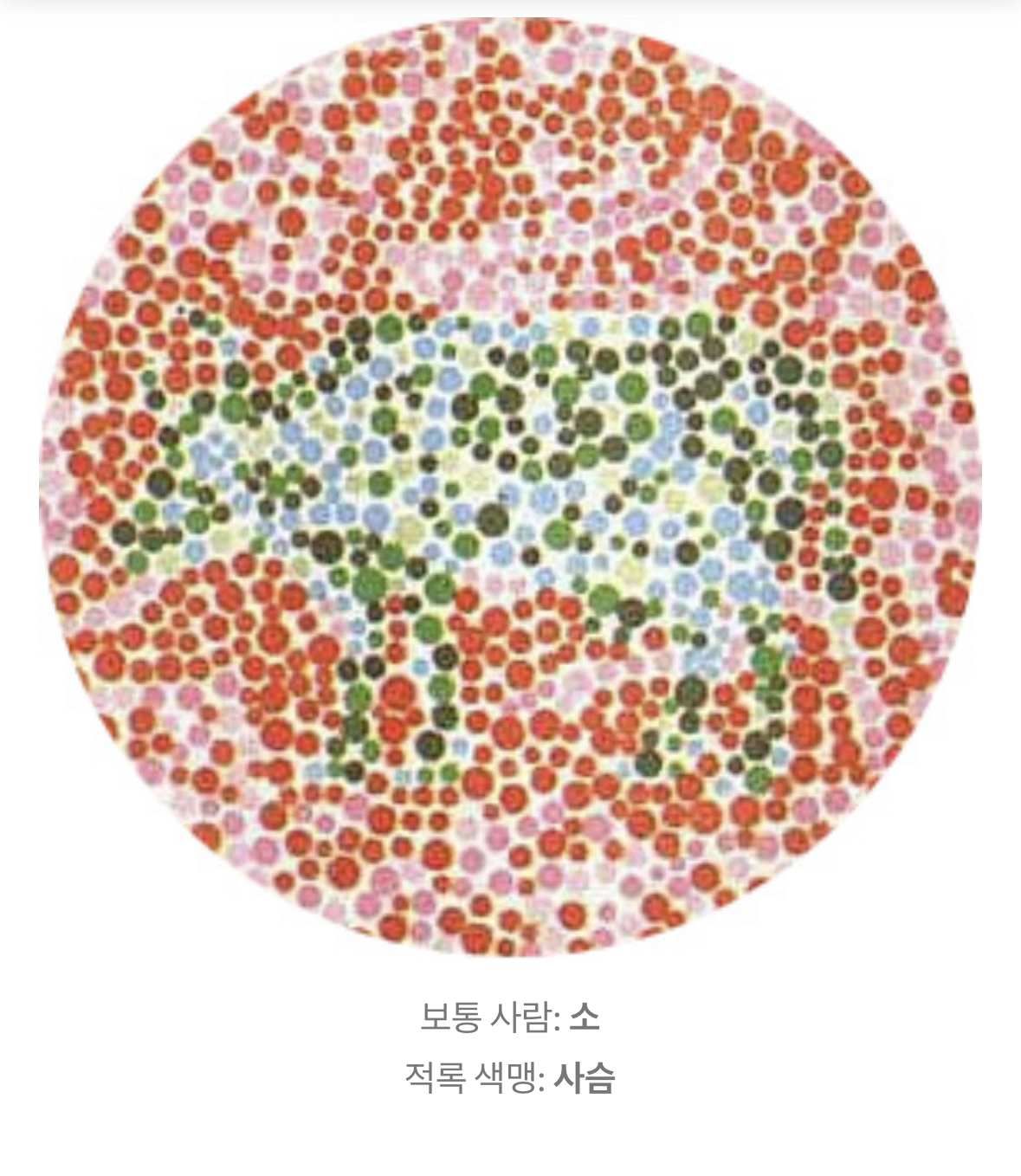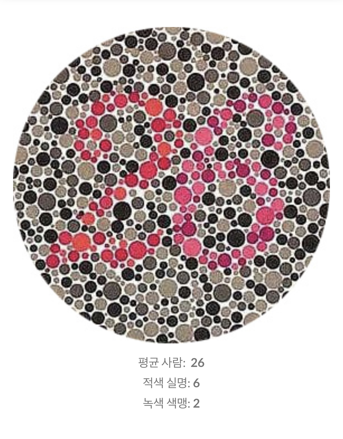 일반적으로 적록색약을 식별하는 데 사용되는 테스트가 있는데요. 바로 이시하라 테스트입니다.