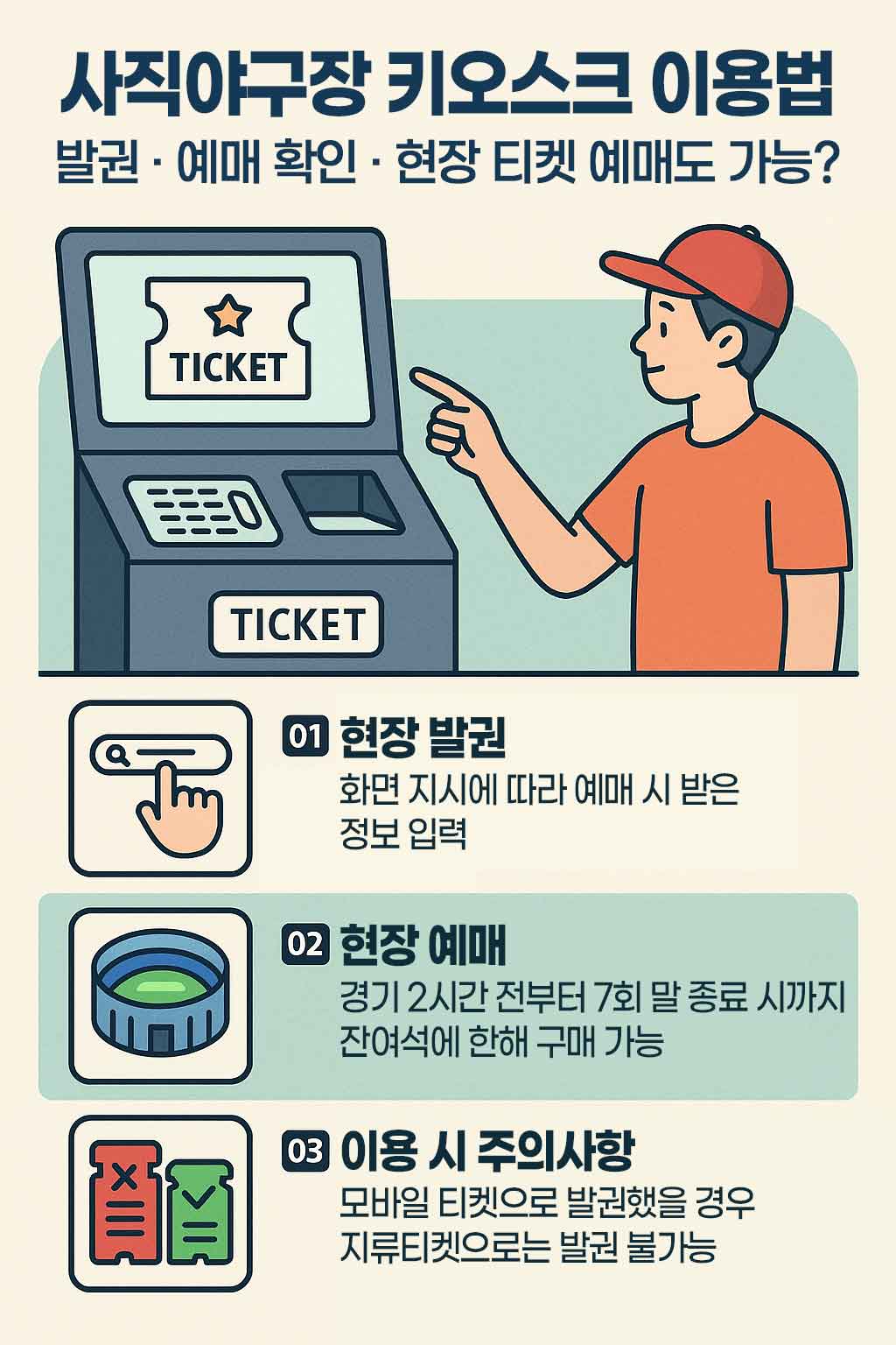 사직야구장 키오스크 이용 방법 요약 인포그래픽
