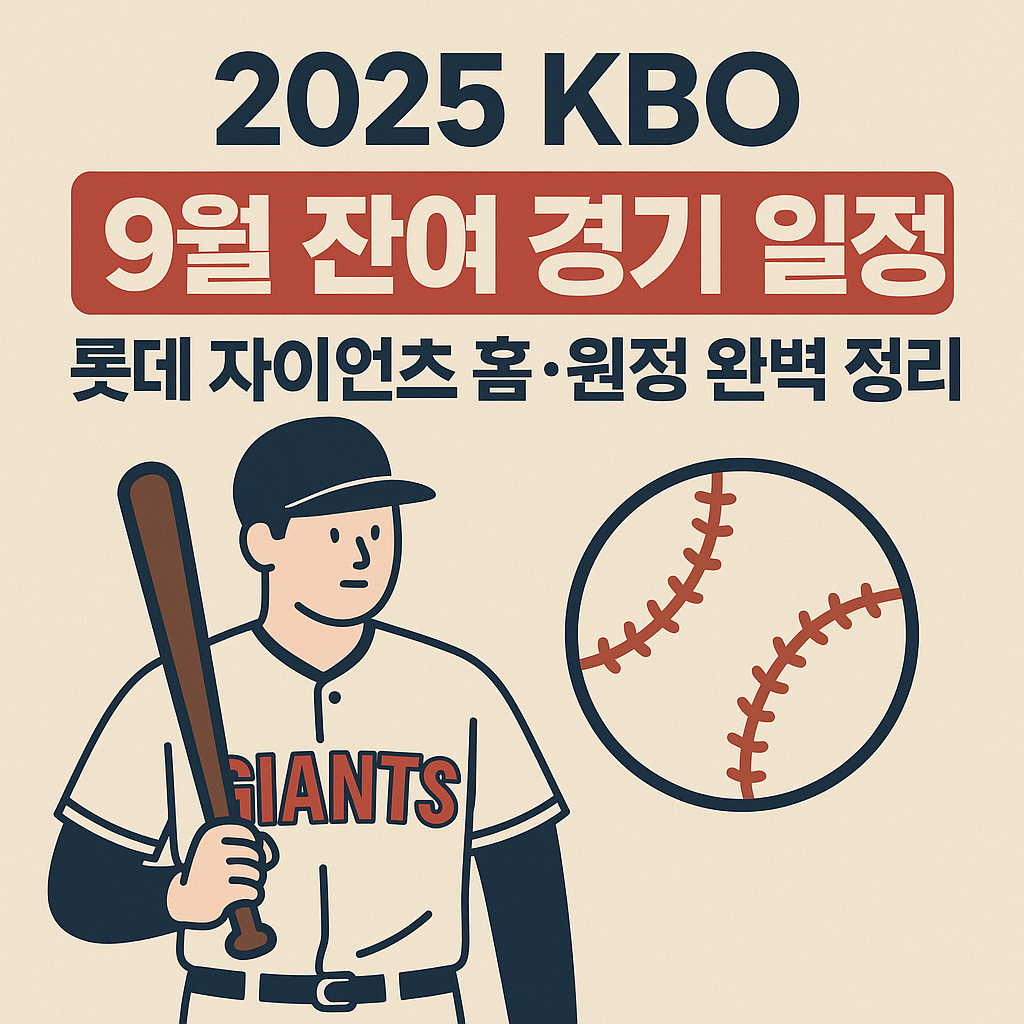 2025 KBO 롯데 자이언츠 8월·9월 잔여 경기일정|홈·원정·예비일 완전 정리