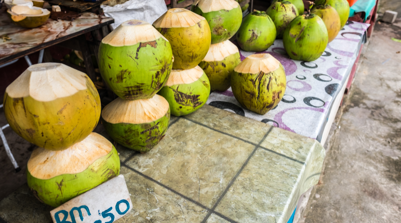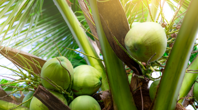 코코넛은 야자수의 열매로 더운 지역 및 동남아 지역에서 흔하게 볼 수 있는 과일입니다.