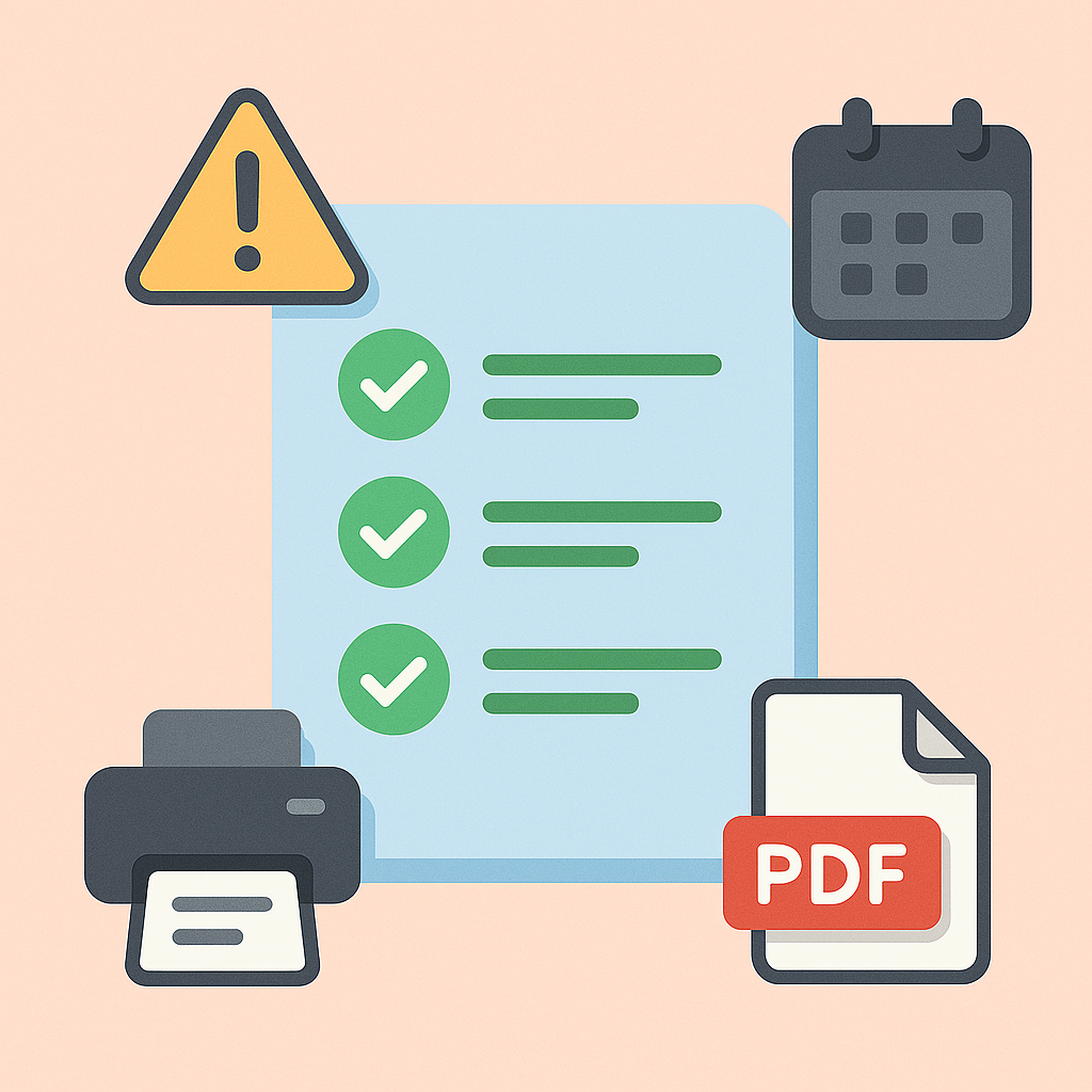 - PDF 저장 후 출력 가능한 서류는 표시되어 있음