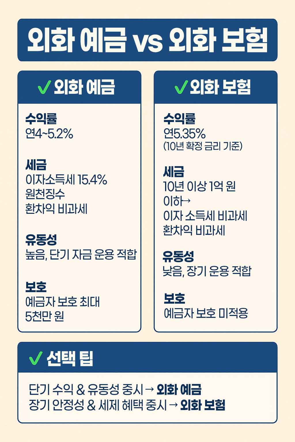 외화 예금 vs 외화 보험, 뭐가 유리할까? | 수익률·과세 기준 비교 (2025년 기준)
