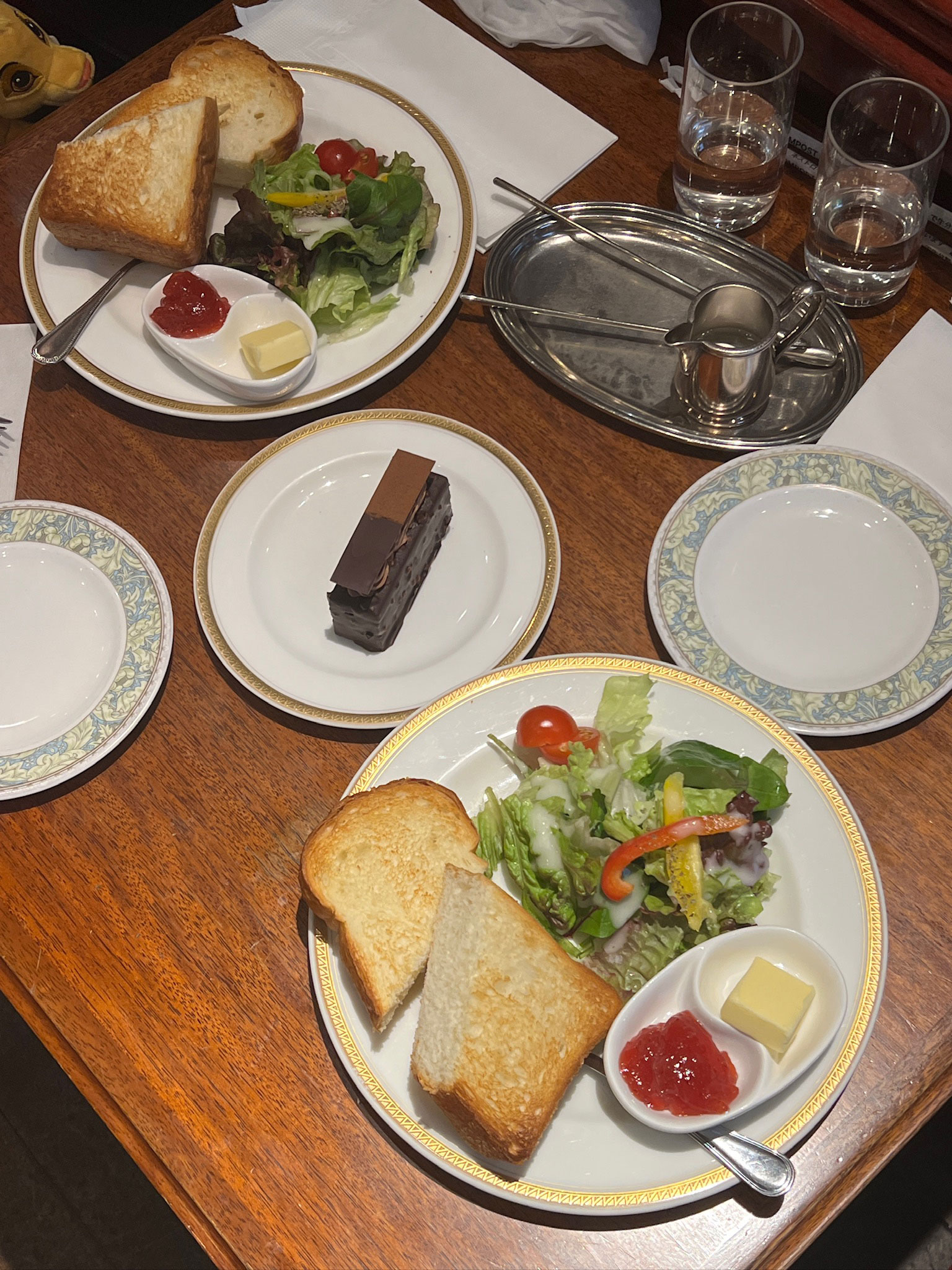 여기서는 카페 오레와 토스트, 초콜릿 케이크를 시켰는데요.