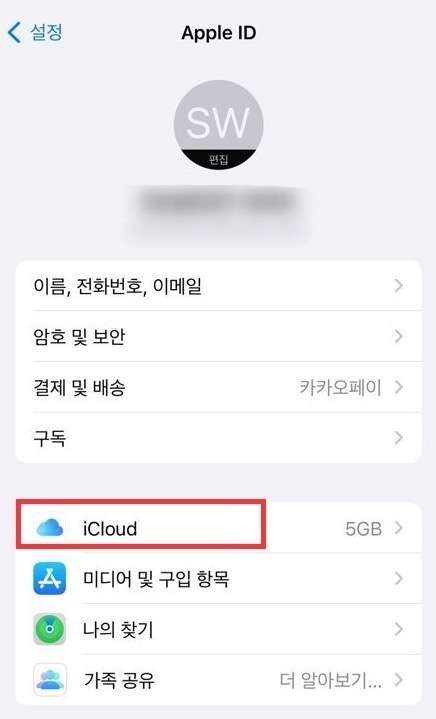 2. [iCloud]를 선택합니다. 아직 로그인하지 않은 경우에 로그인을 해줍니다.