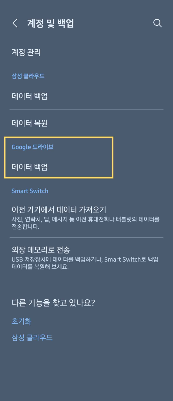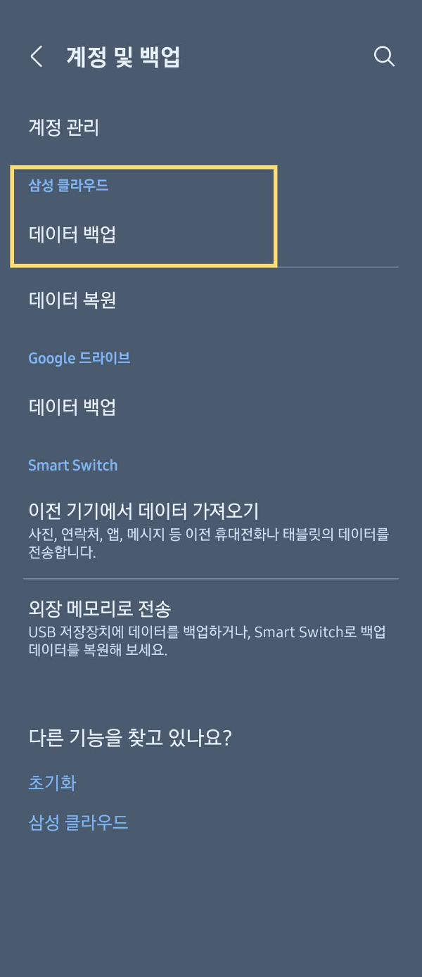 계정 및 백업에서 삼성 클라우드 데이터 백업.