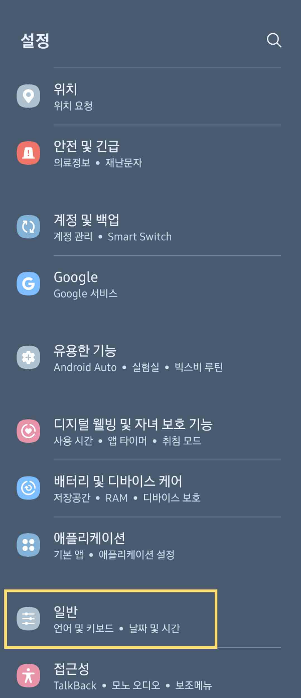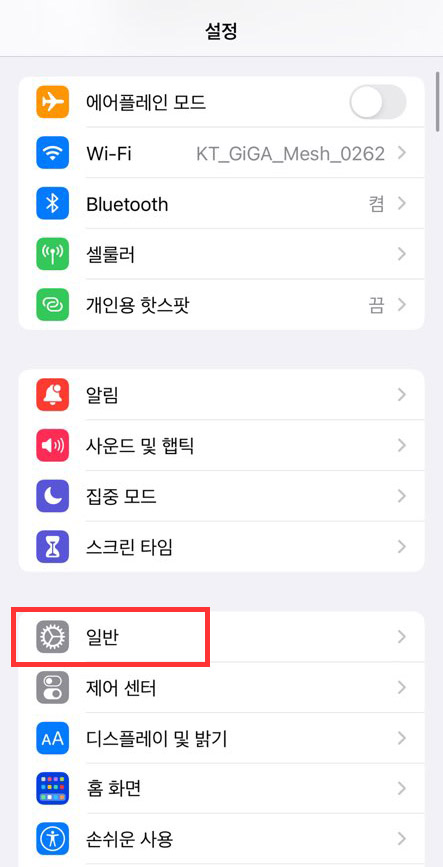 1. [설정]을 탭 하고 스크롤하여 [일반]으로 들어갑니다.