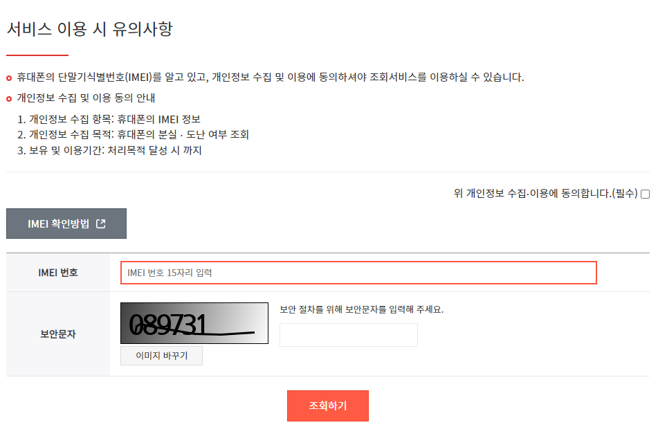 3. IMEI번호를 입력 후 조회