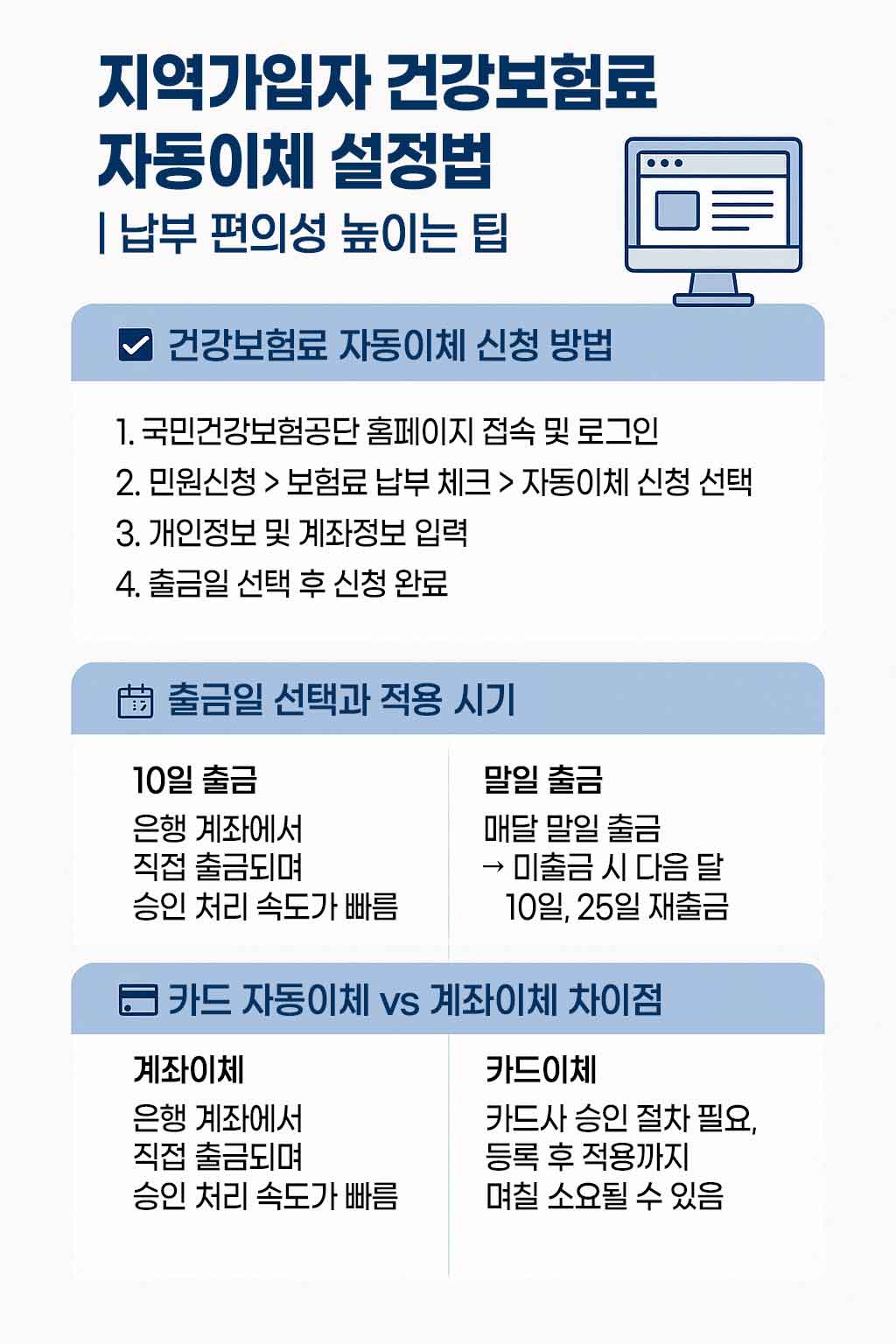 지역가입자 건강보험료 자동이체 설정법 요약 인포그래픽
