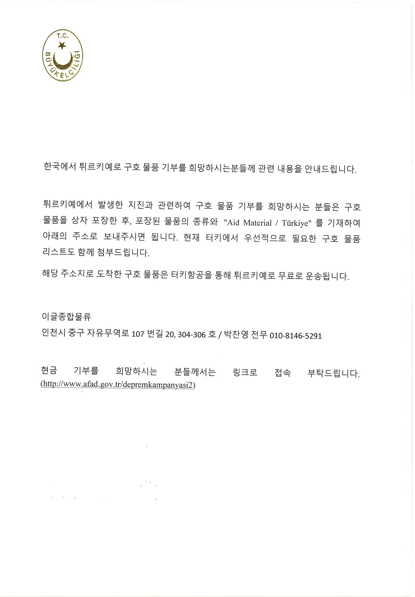 ◼ 튀르키예 구호물품 보내는 방법