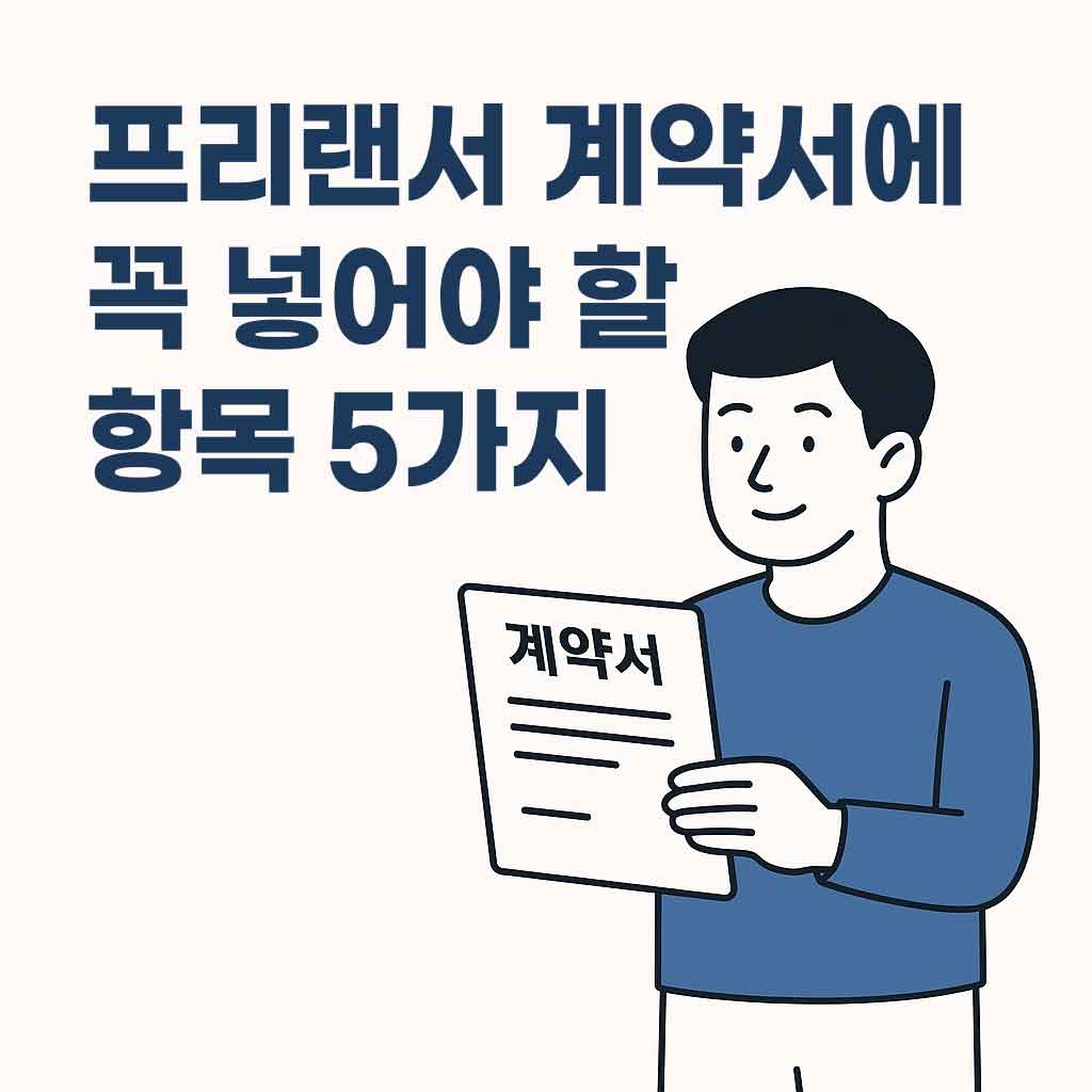 프리랜서 계약서에 꼭 넣어야 할 핵심 항목 5가지를 한눈에 정리한 이미지입니다.