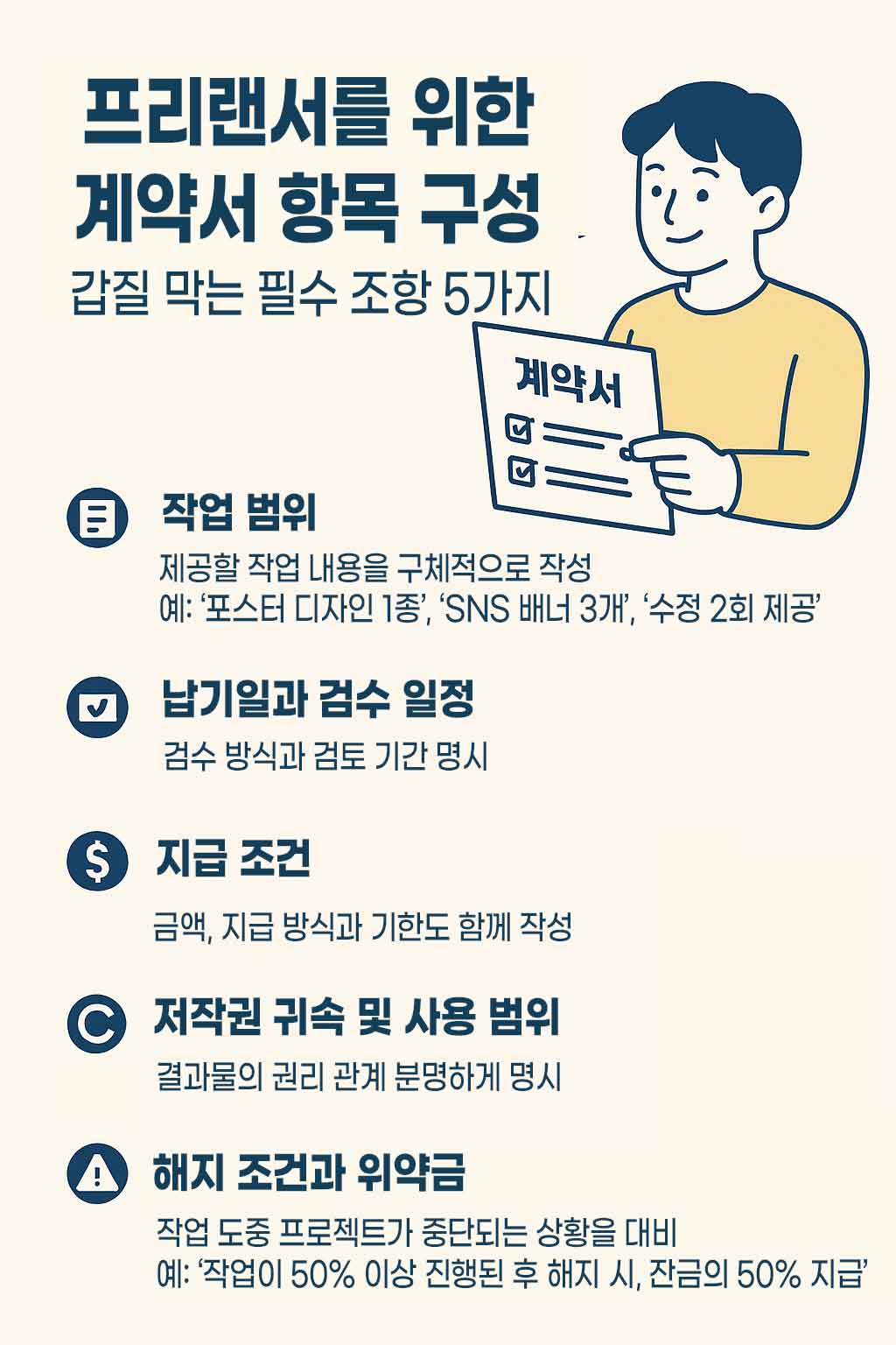 프리랜서를 위한 계약서 항목 구성 5가지 요약 인포그래픽