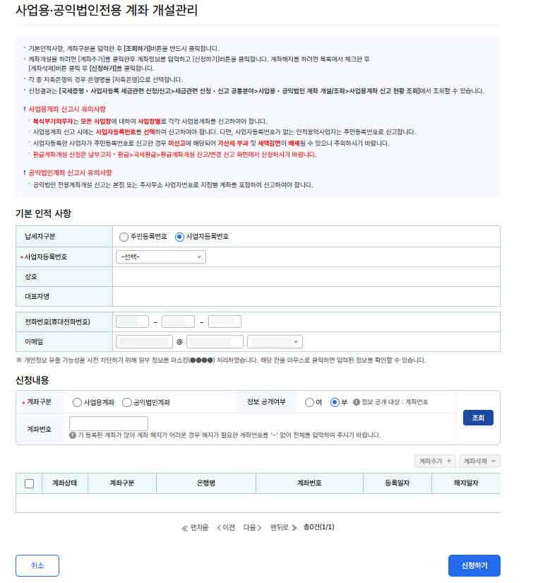 등록된 계좌는 사업용으로 인정되며, 세무 신고 시 해당 계좌 내역을 기반으로 작성하면 정확도가 올라갑니다.
