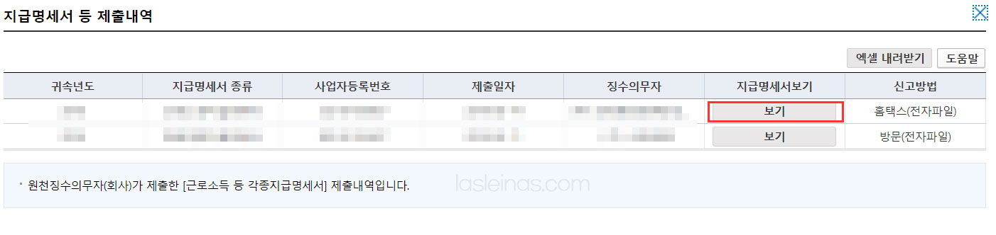 지급명세서 등 지출내역의 보기 버튼 클릭