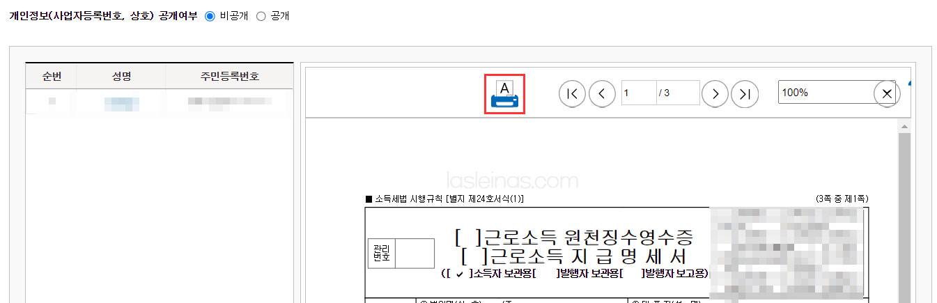 원천징수영수증 발급 및 PDF 저장 방법