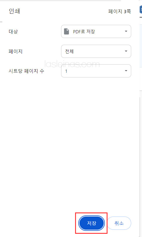 인쇄 아이콘 클릭 후 인쇄- 저장 크릭