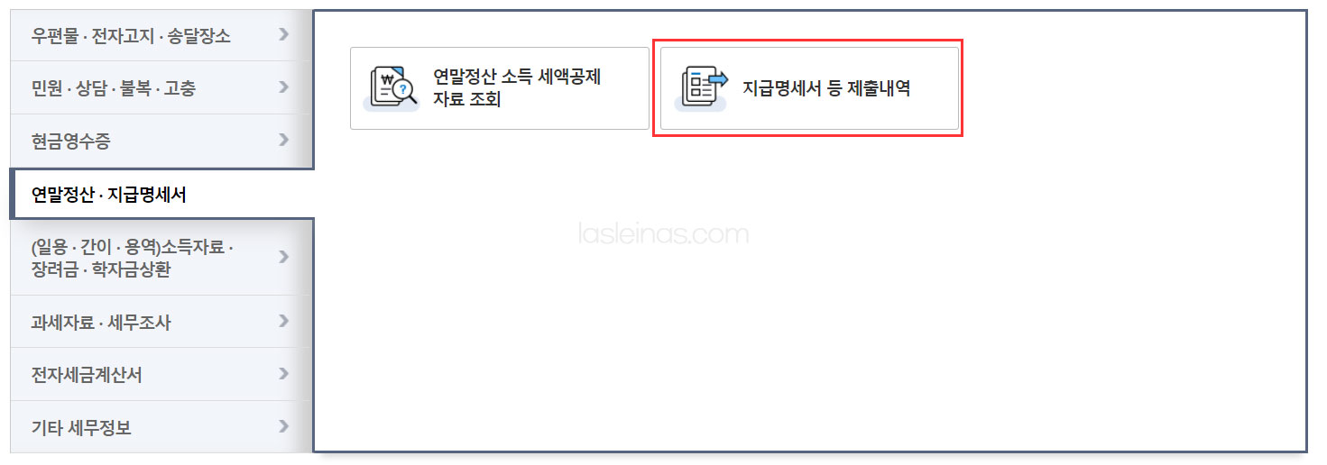 연말정산 지급명세서- 지금명세서 등 제출내역