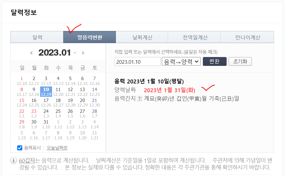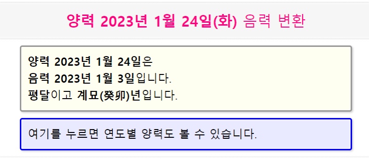 검색창에 "음력양력변환기"라고 검색하면 됩니다. 그러면 바로 위 이미지처럼 양력 날짜를 입력할 수 있는 칸이 나오는데 여기에 자신의 양력 생년월일을 입력하기만 하면 올해 나의 진짜 생일 일자를 확인할 수 있습니다. 참고로 태어난 날로부터 현재까지의 일수 계산도 가능하니 필요한 분들은 이용하시면 좋을 듯합니다.