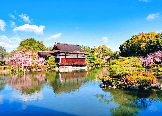 헤이안 신궁은 일본의 옛 수도였던 교토의 명소로 100년이 넘은 벚나무가 있습니다. 총 300그루 정도의 벚나무가 있으며 주홍색의 건물과 벚꽃의 풍경이 어우러져 아름다움을 자랑합니다. 벚꽃 시즌에는 콘서트와 다도회가 열려 볼거리 또한 다양합니다. 헤이안 신궁은 밤에도 꽃구경을 즐길 수 있는 아름다운 곳이니 가보기를 추천해 드립니다. 이곳의 벚꽃 절정 시기는 4월 초~ 중순으로 이 기간에 방문해 보세요.