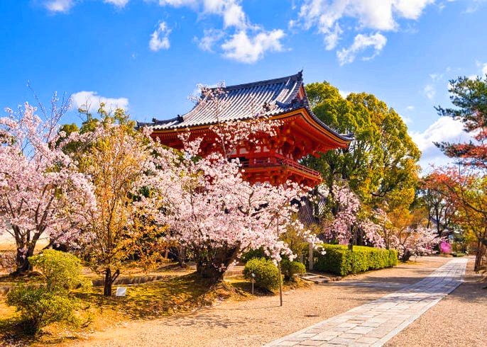 다이고지 사원은 교토 남부지역 최고의 벚꽃 명소로 뽑히는 곳입니다. 이곳에는 100년이 넘은 거대한 수양 벚나무와 오야마 벚나무가 있는데요. 전통적인 건물과 벚꽃이 어우러져 아름다운 광경을 만끽할 수 있습니다. 벚꽃 절정 시기는 3월 말에서 4월 초까지입니다. 또한 매년 4월 둘째 주 일요일에는 호타이코 하나미 교레쓰라고 하는 벚꽃 구경 퍼레이드도 열린다고 하니 구경해 보세요.
