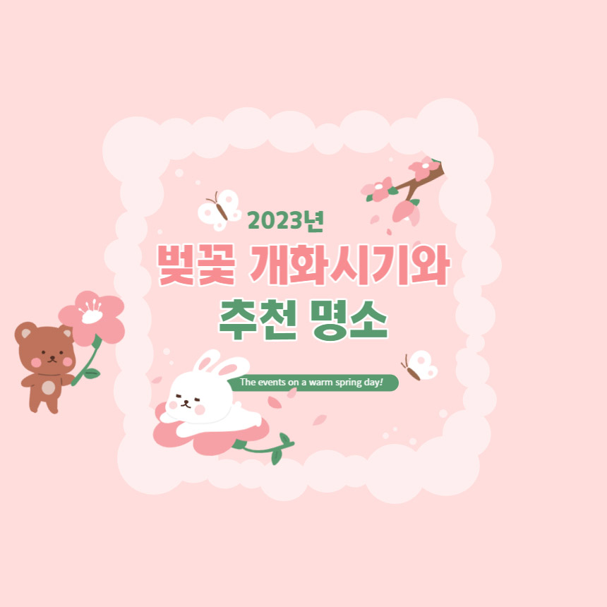 겨울이 지나고 따스한 봄바람이 불어오는 3월이 다가옵니다. 날씨가 따뜻해지면서 전국 각지에서는 꽃 축제 준비가 한창인데요. 봄 하면 떠오르는 단어는 단연 벚꽃이 빠질 수 없죠. 그래서 오늘은 올해 2023년 진행되는 각 지역별 벚꽃 개화 시기 및 주요 행사 정보를 알려드리겠습니다. 참고하셔서 즐거운 나들이 다녀오시길 바랍니다.