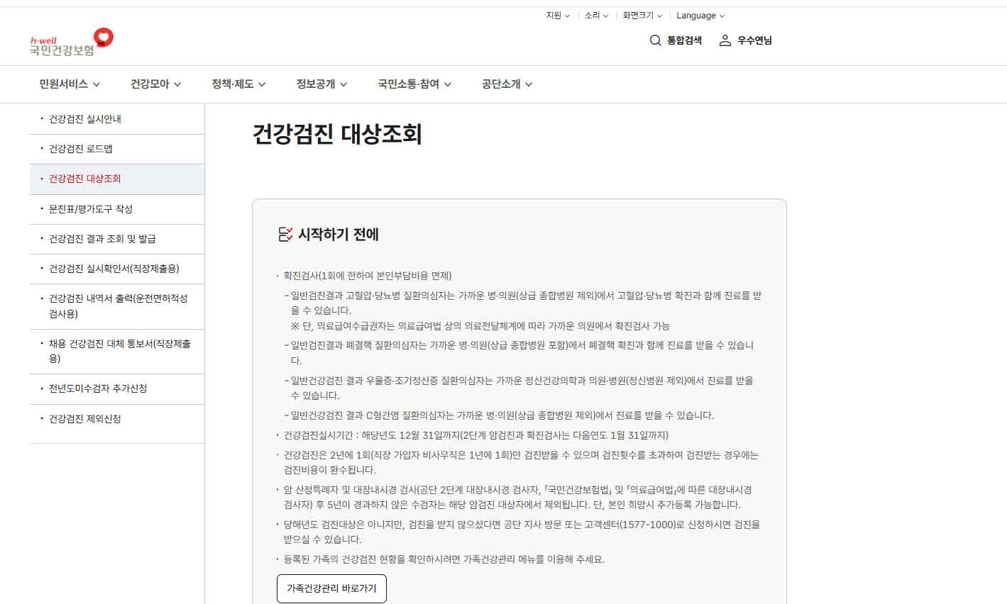 국가건강검진 대상자 조회 방법