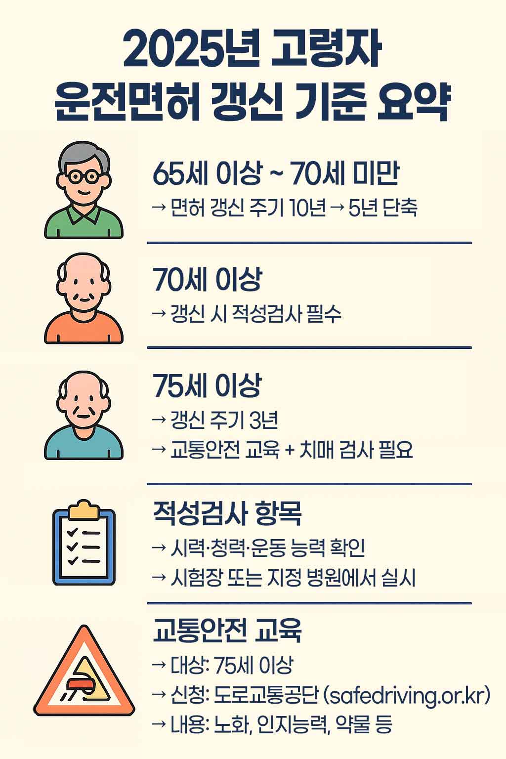 2025년 고령자 운전면허 갱신 기준 | 나이별 적성검사·교육 요건 정리