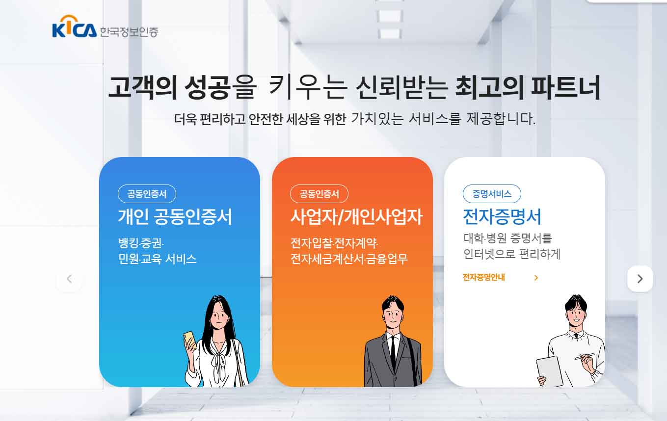 한국정보 인증 공식 홈페이지에서 더욱 간편하게 발급발으실 수 있습니다.
