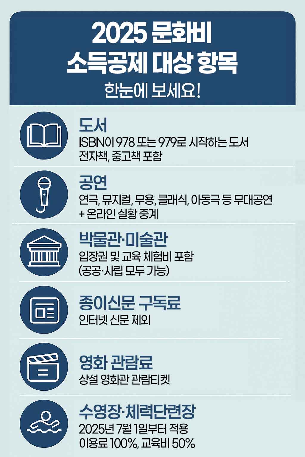 2025 문화비 소득공제 항목 요약 인포그래픽