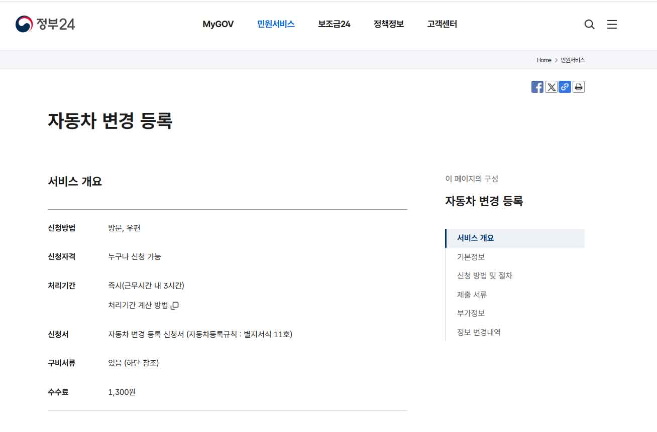 정부24 차량 변경 등록 바로가기