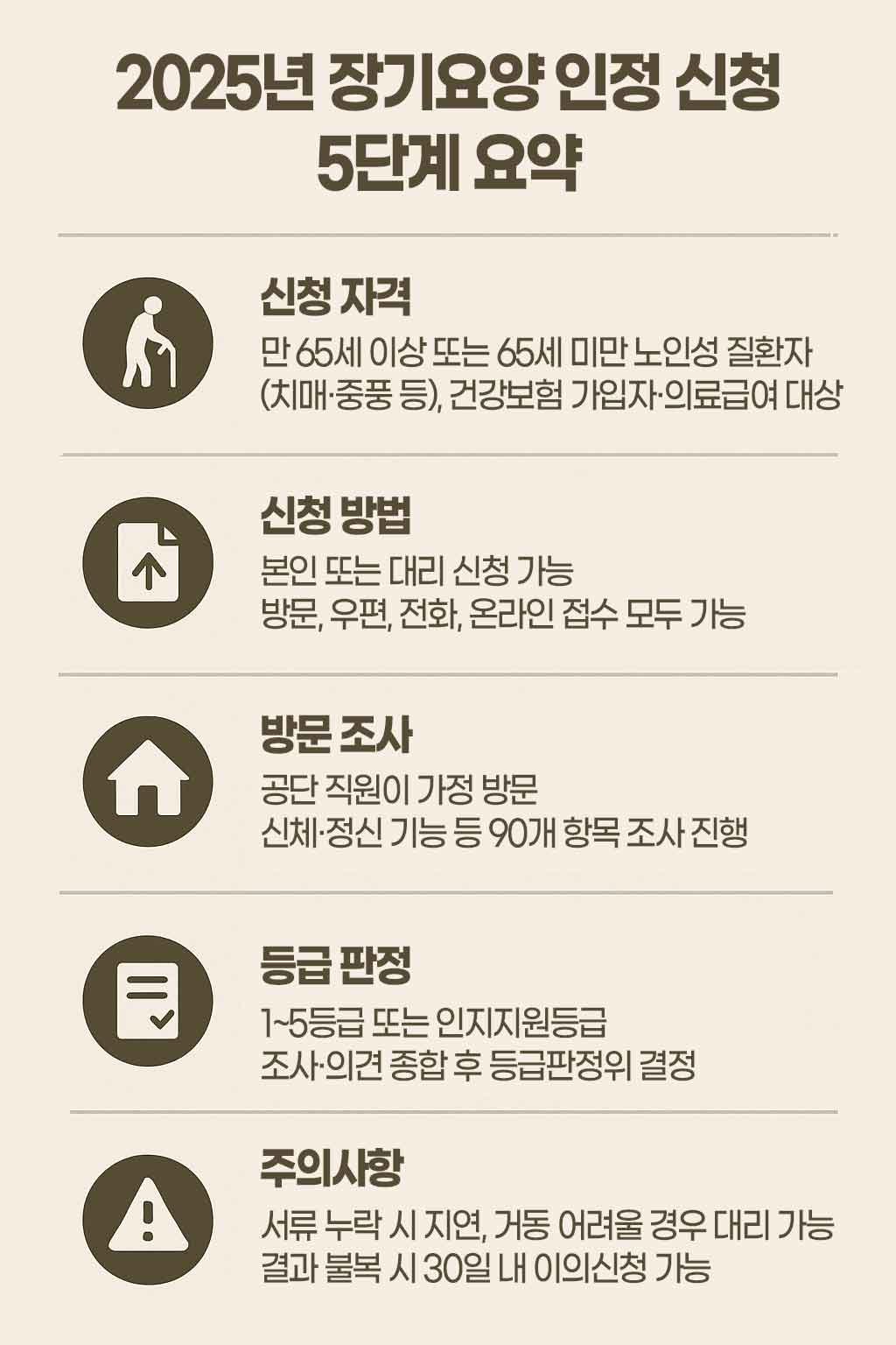2025 장기요양 인정 신청 5단계 요약 인포그래픽