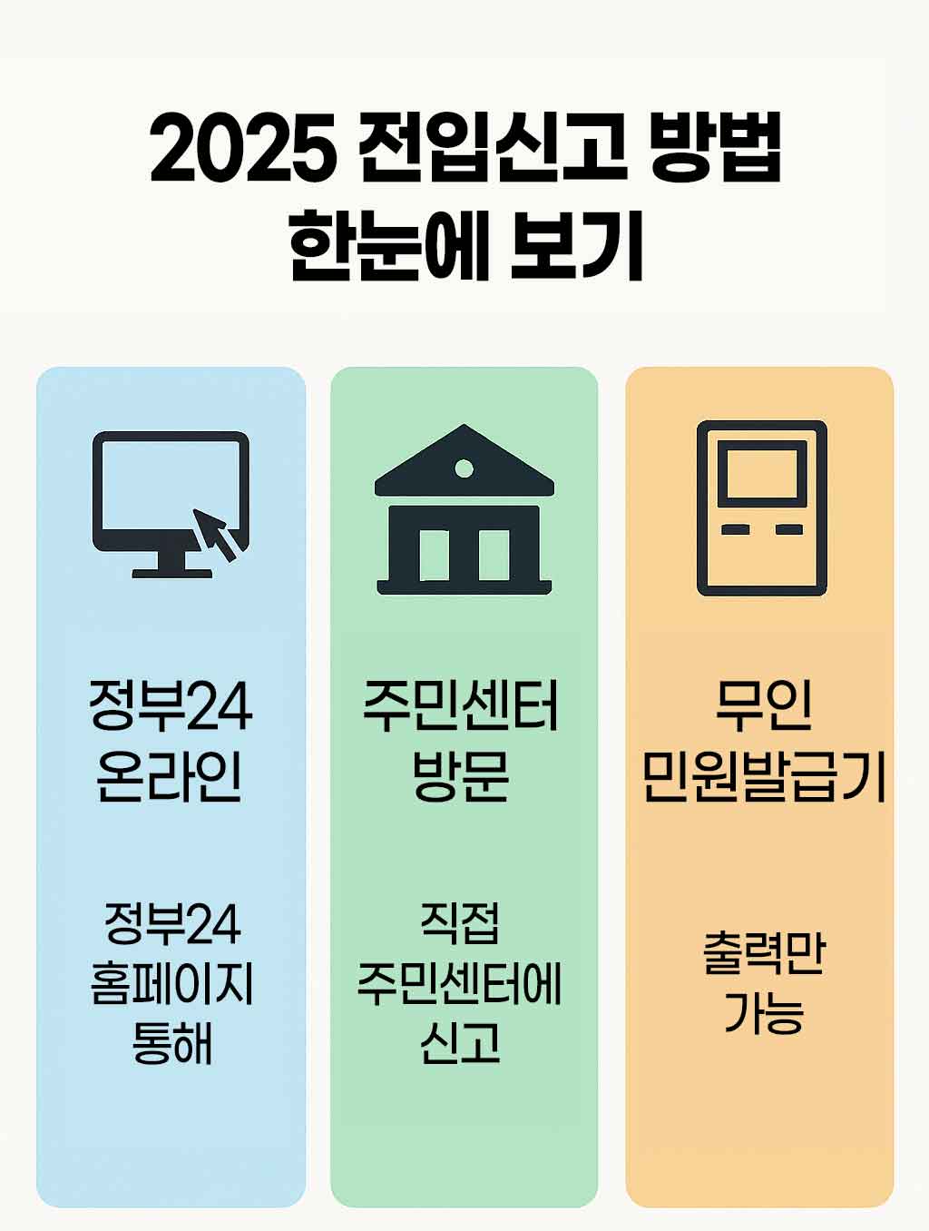 2025년 전입신고 방법 총정리 | 정부24·무인발급기·주민센터 방문 비교