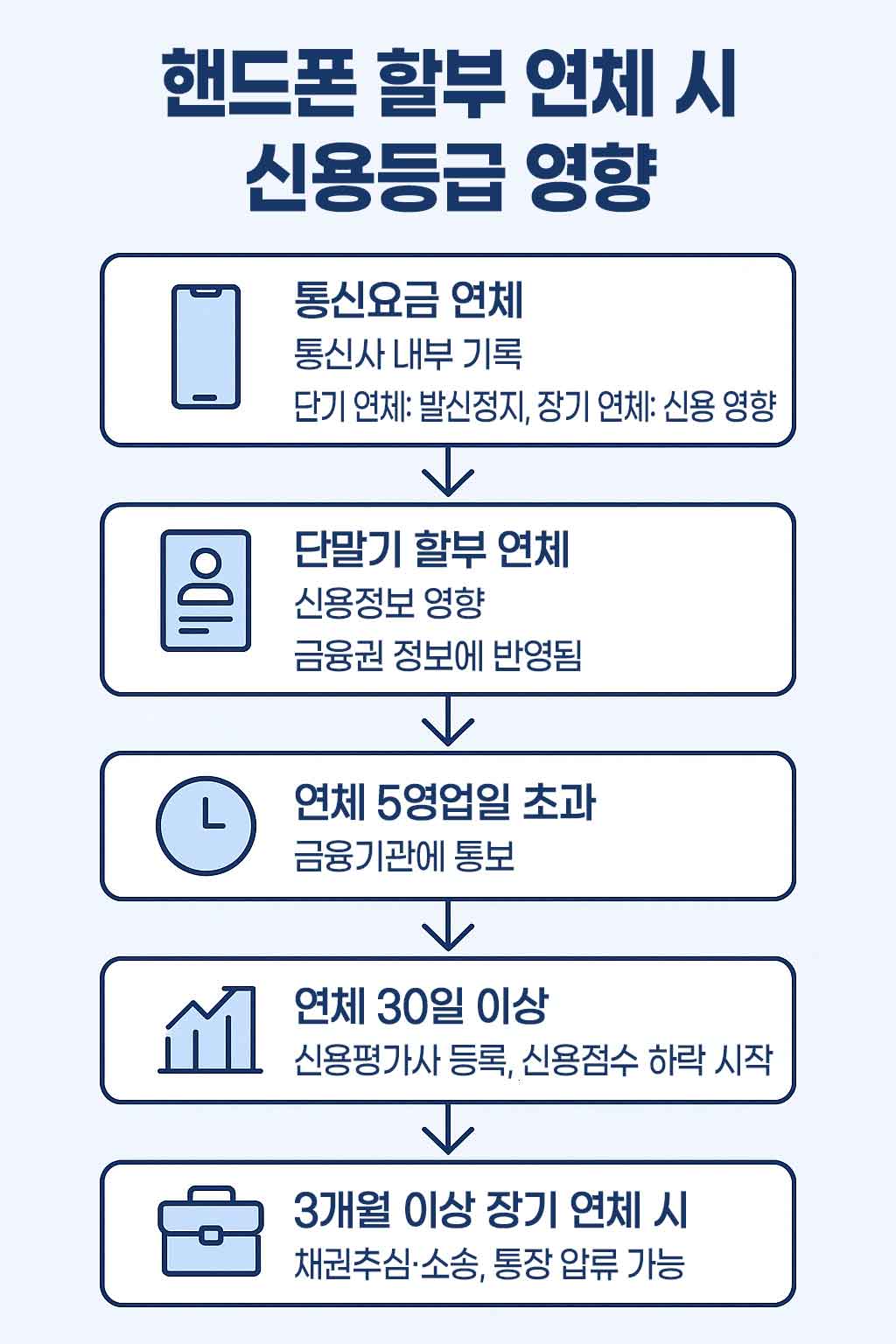 핸드폰 할부 연체 시 신용등급 영향 요약 인포그래픽 이미지