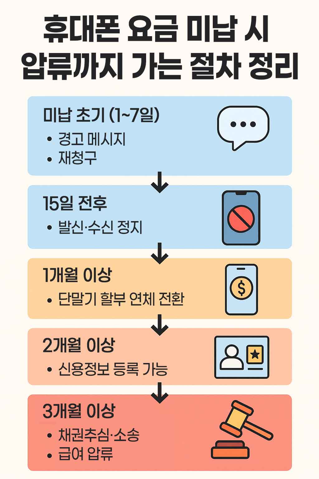 휴대폰 요금 미납 시 압류까지 가는 절차 정리 요약 이미지