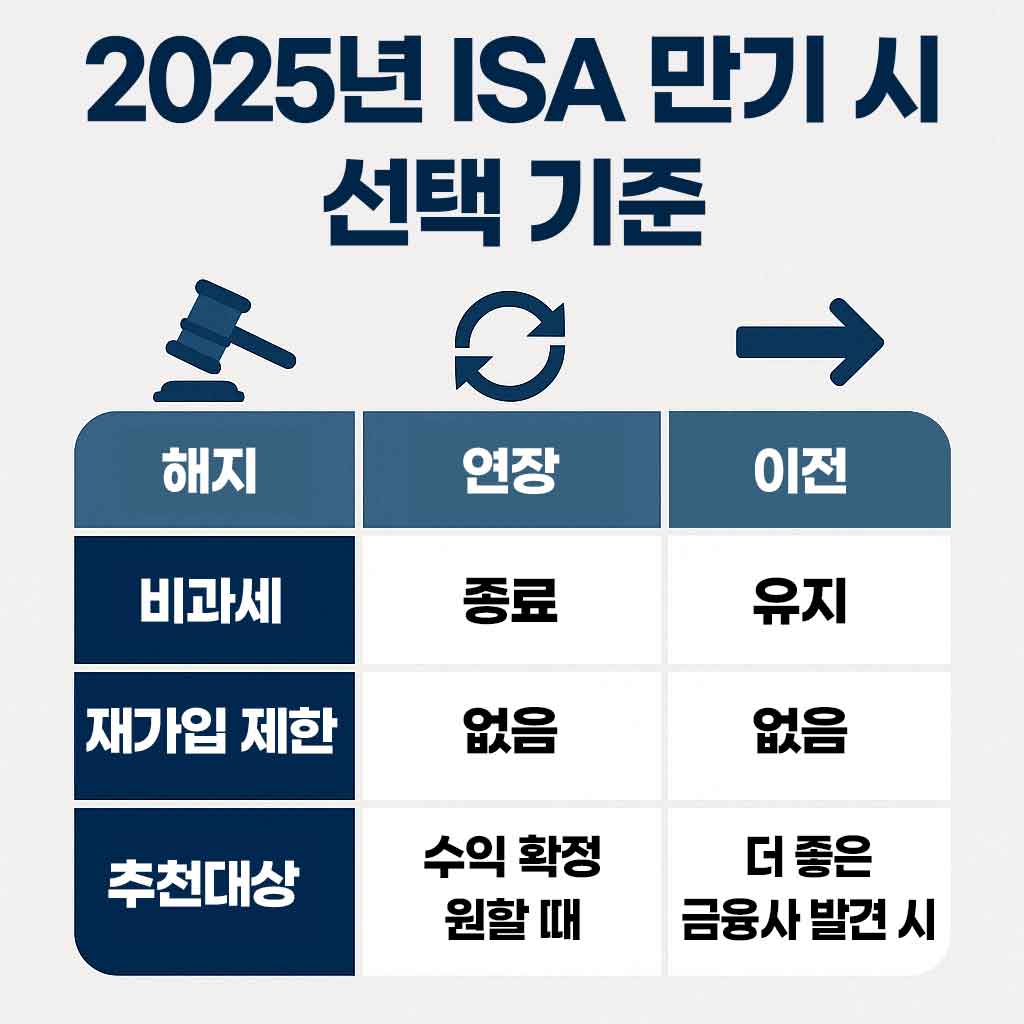 ISA는 세제 혜택을 제공하는 금융상품인 만큼, 만기 시 결정은 굉장히 중요합니다.