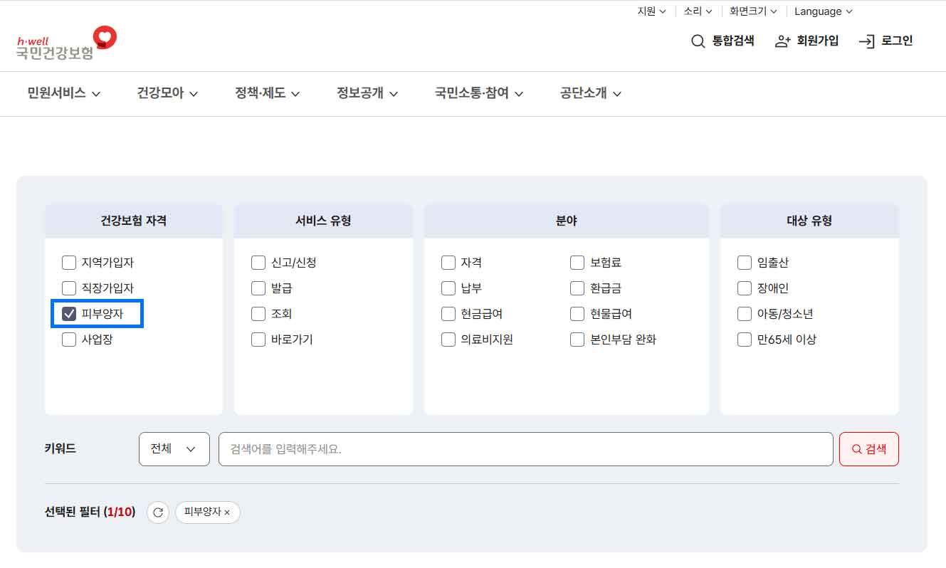 국민건강보험 홈페이지에서 피부양자 등록 방법 안내