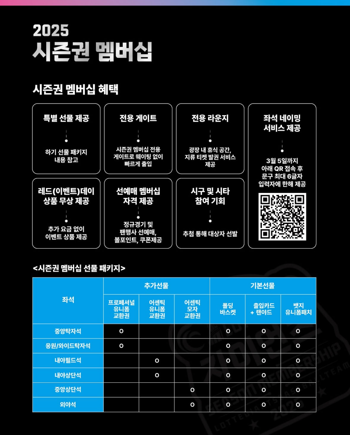 선예매 멤버십 : 연간 선예매 권리 구매(일반 예매 4시간 전, 한 경기당 최대 2매)