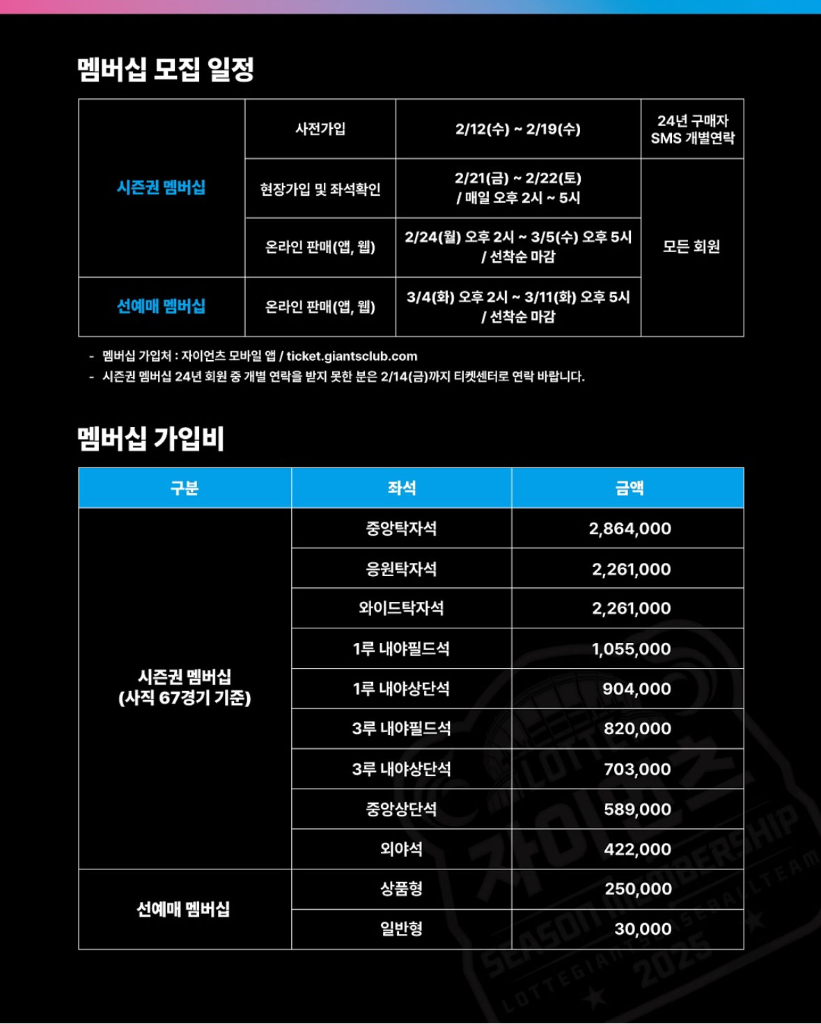 2025 롯데자이언츠 시즌권 및 선예매권 판매 일정 및 가격