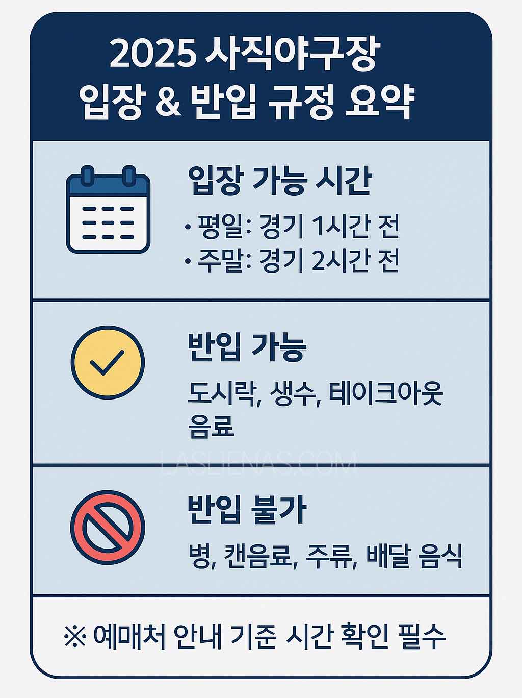 사직구장 입장 가능 시간 & 반입 규정 요약 표