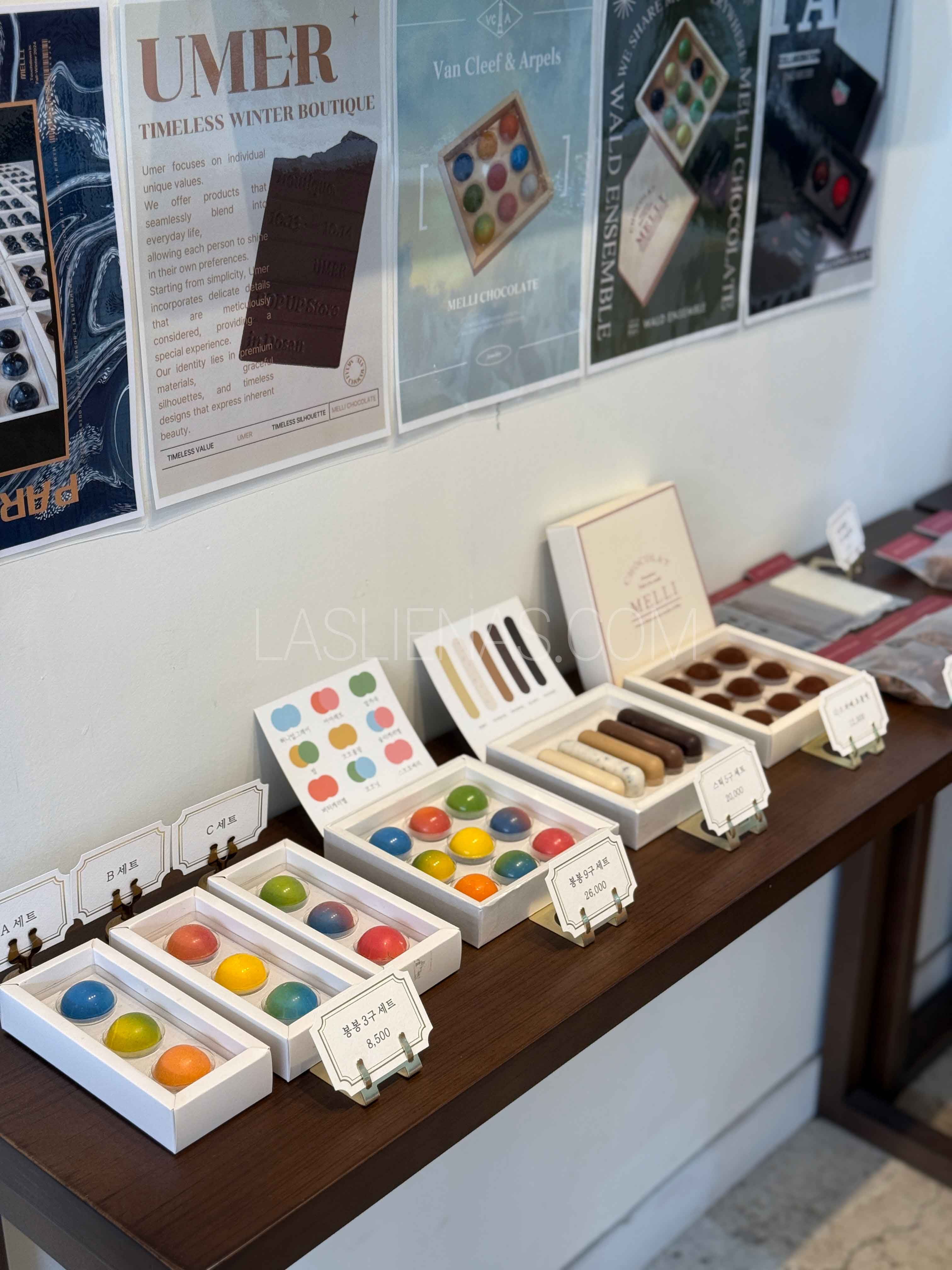카페 내부에는 다양한 생초콜릿들이 진열돼 있었어요.