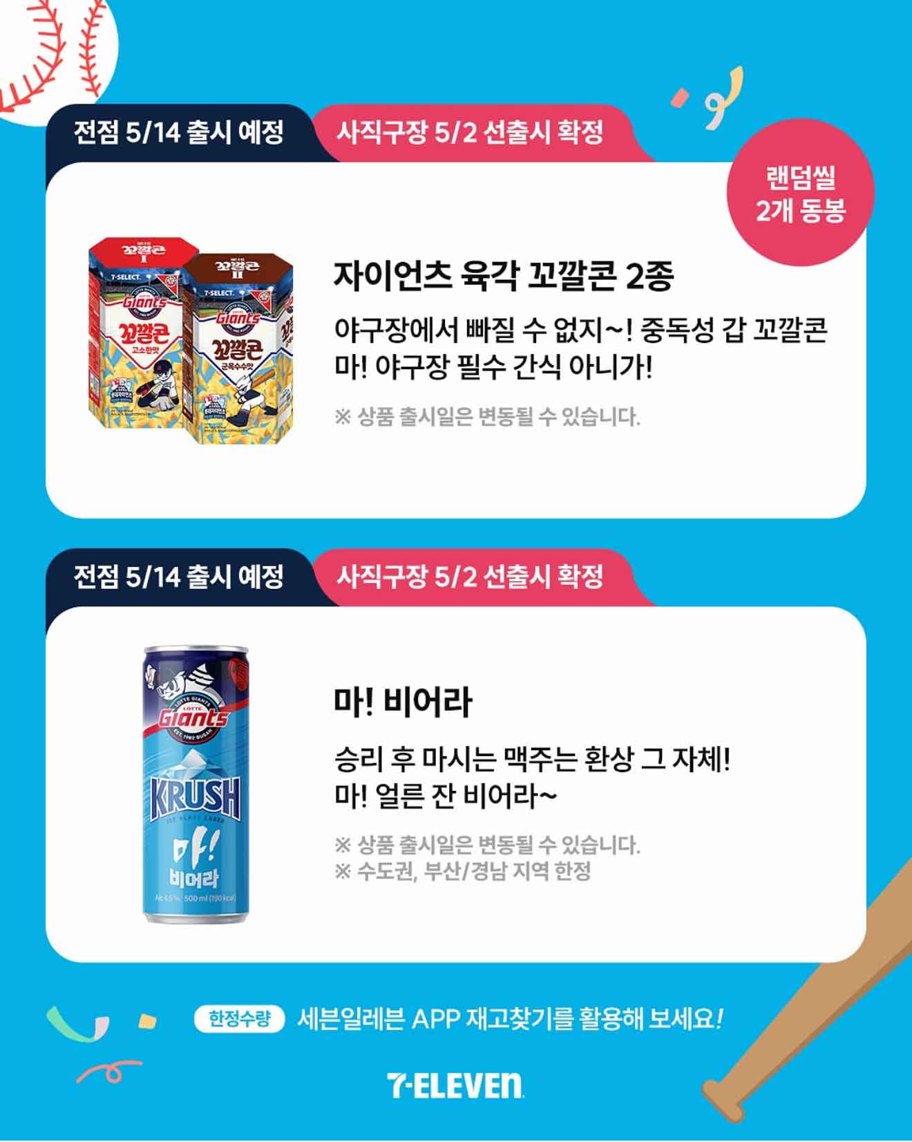 먼저 5월 2일 사직야구장에서 출시되며 5월 7일부터 전국 세븐일레븐에 순차 입고됩니다.