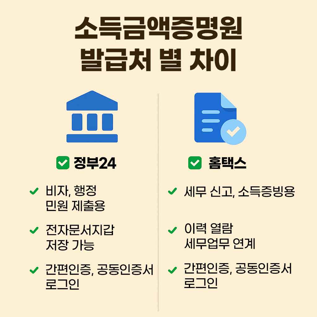 2025년 4월 기준으로 정부24와 홈택스에서 발급받는 절차와 차이를 비교해 정리해 드릴게요.