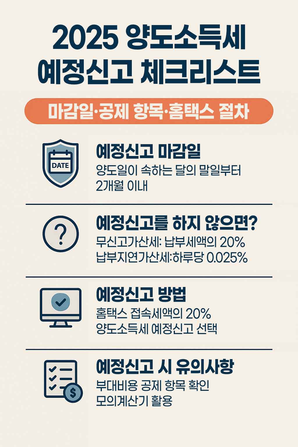 2025 양도소득세 예정신고 체크리스트 요약 이미지