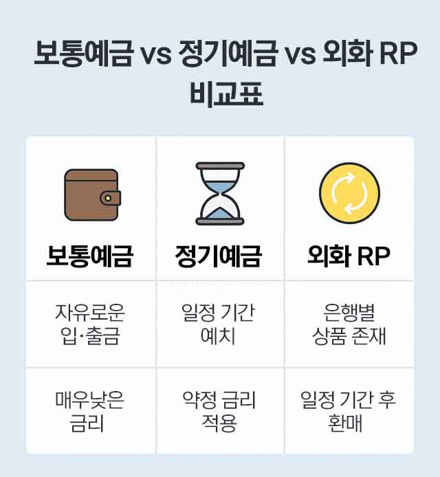 보통예금vs정기예금vs외화RP 비교표 정리 이미지