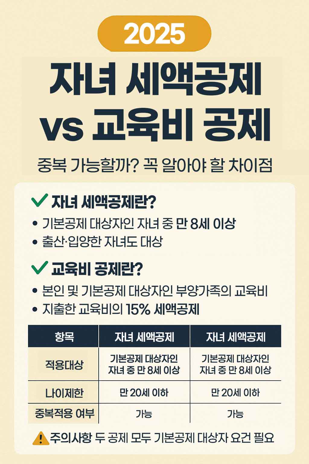 2025 자녀 세액공제 vs 교육비 세액공제 | 중복 가능할까? 꼭 알아야 할 차이점