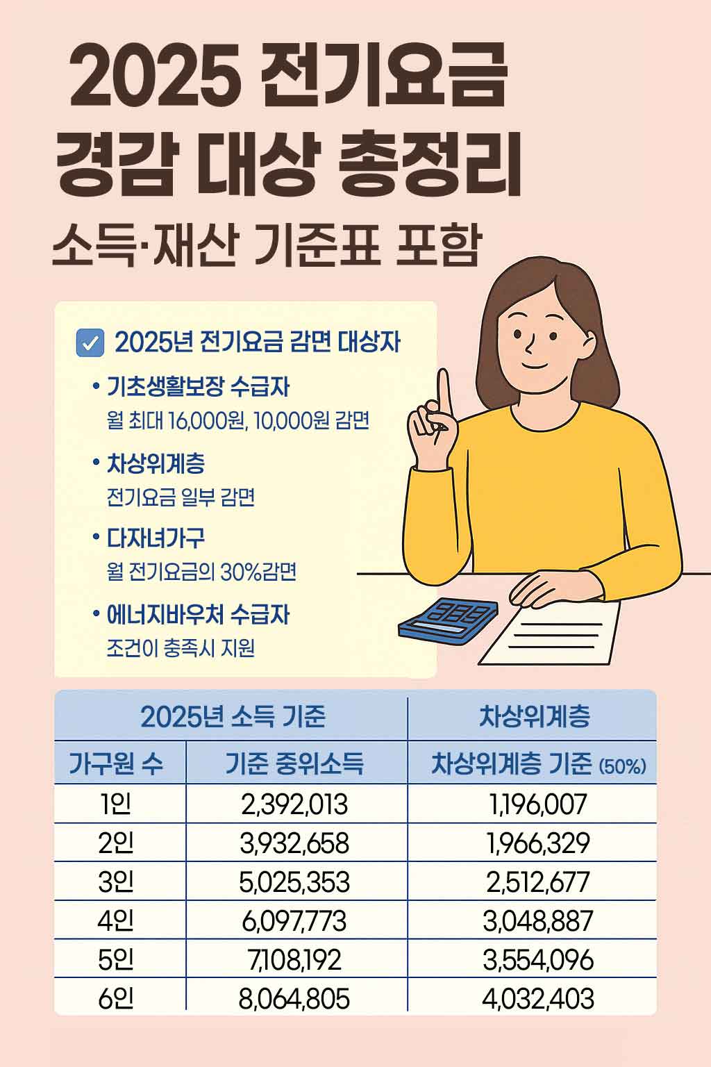 2025 전기요금 경감 대상 총정리 | 소득·재산 기준표 포함