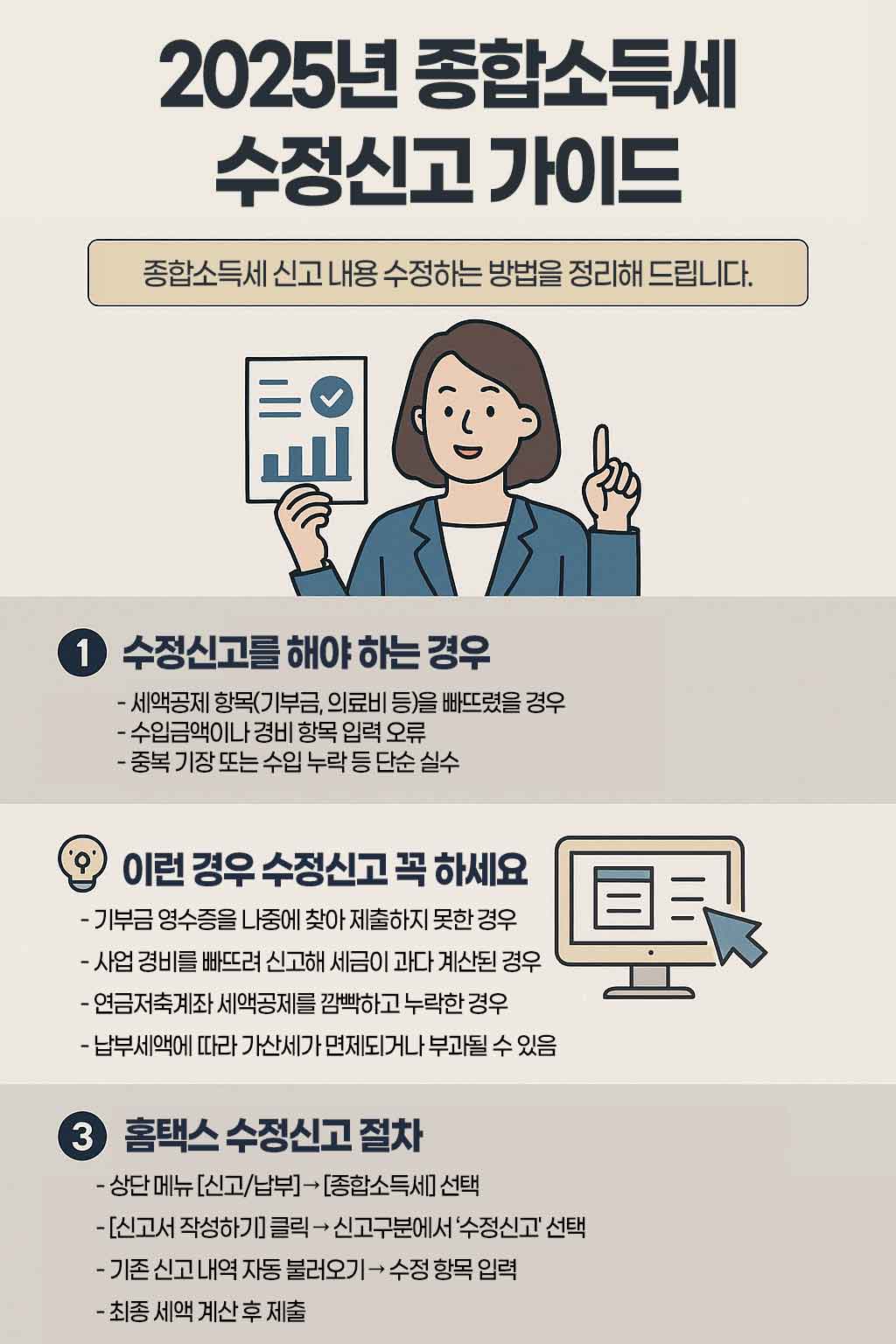 이번 글에서는 2025년 기준 종합소득세 수정신고가 가능한 조건과 홈택스를 통한 절차,