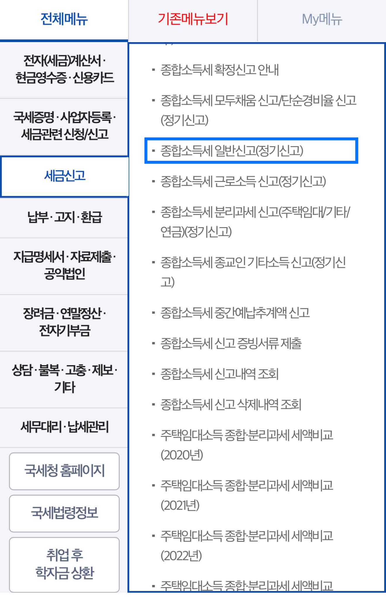 2. 로그인 → [종합소득세 확정 신고] 메뉴 선택