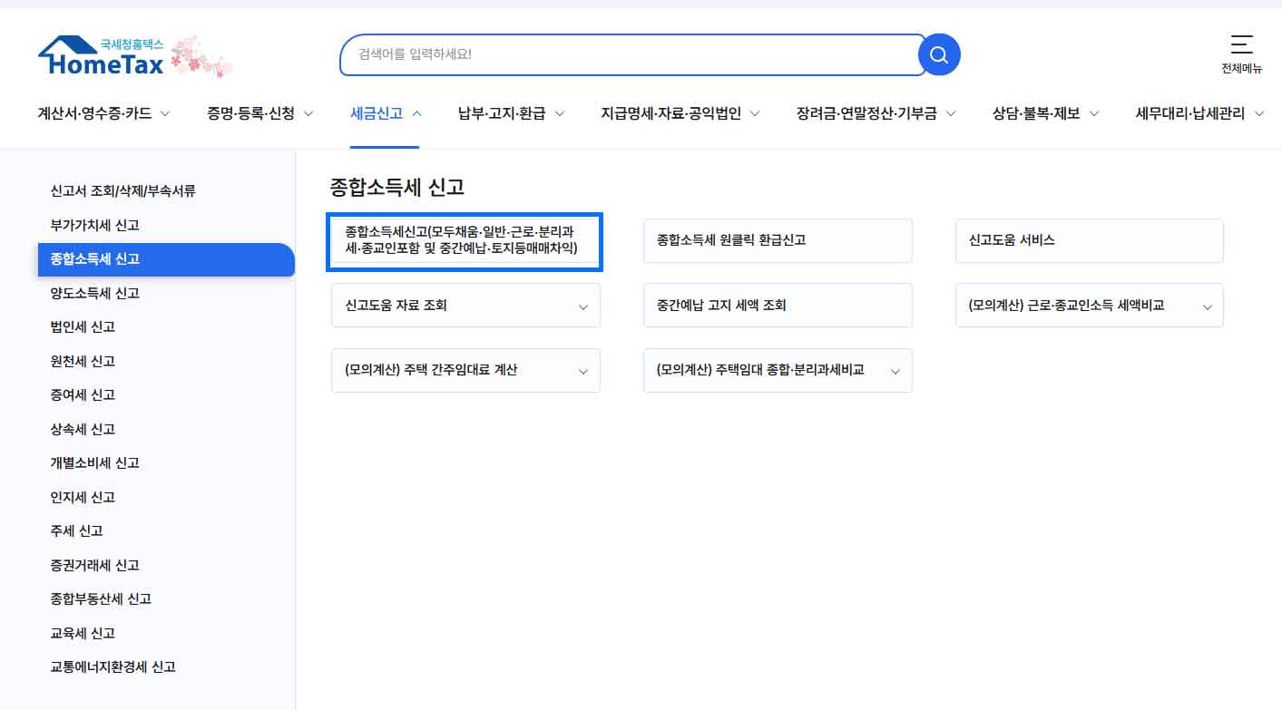 홈택스를 통한 종합소득세 신고 방법 (PC)